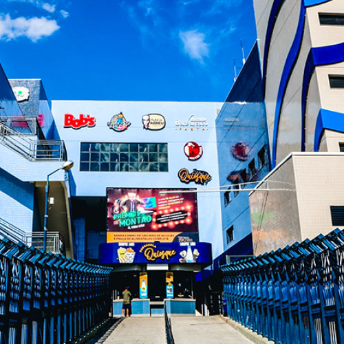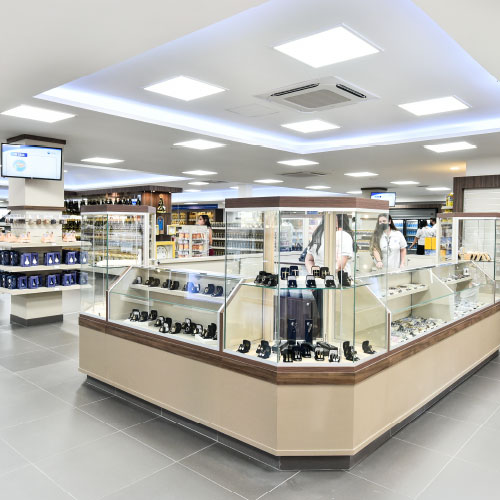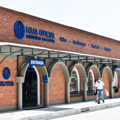 Fachada Oeste: Ampliamos e modernizamos a área útil da Loja Oficial, criando nova área de vendas, vitrines e comunicação visual integrada. O projeto priorizou eficiência, acessibilidade e uma experiência acolhedora para todos os visitantes.